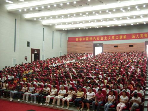 9月8日上午,近八百余名新生迈着整齐的步伐走入大学生活动中心,随着我校校史宣传片的播放,拉开了我系开展2008级新生入学教育活动的序幕。