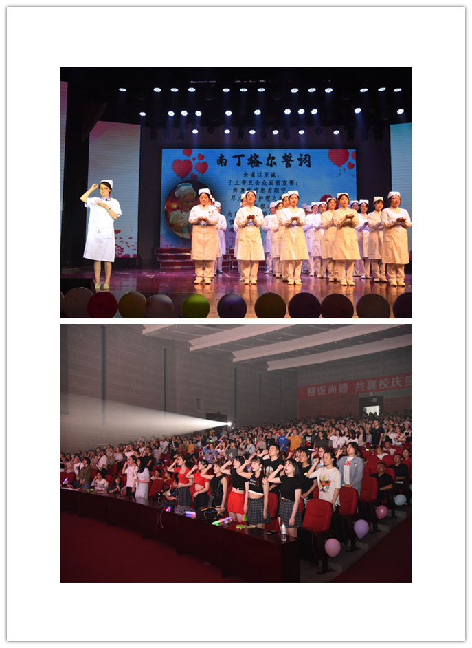 传承五四魂,共筑天使梦。为纪念五四运动100周年和第108个国际护士节,弘扬伟大的五四精神和南丁格尔精神,2019年5月12日晚,我校在大学生活动中心大礼堂隆重举办纪念五四运动100周年暨5·12国际护士节文艺晚会。党委副书记、院长章尧,党委副书记李刚,副院长吴金月,副院长郑兰荣,职能部门和学院负责人应邀与千余名师生共赏晚会。