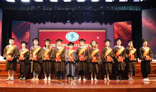 章尧发表了情真意切、热情洋溢的讲话。他首先代表学校向圆满完成学业的全体毕业生同学表示最真诚的祝贺,向一直关爱同学们成长成才的师长、家人及朋友表示由衷的感谢。他指出,学校的发展有同学们的贡献,同学们的进步离不开学校的付出。经过几年的学习和磨练,同学们德智体美全面发展,在各级各类专业竞赛和创新创业等大赛中屡获佳绩,并涌现出了8名临床医学专业学生实习期间抢救晕厥路人、2015级医学检验技术专业辛华同学为白血病患者捐献造血干细胞等先进事迹,以实际行动诠释了医者仁心。离别之际,章尧以“自强”一词语重心长寄语毕业生同学,希望大家要把握一个方向,夯实两个基础,抓住三个关键:一要不忘初心,挺起精神脊梁。人无精神不立,国无精神不强。人之所以能够历经挫折而不断奋起,历尽苦难而淬火成钢,靠的是精神、是理想、是信念。理想指引人生方向,信念决定事业成败。要自觉把个人理想同国家前途、自己人生同民族命运紧密联系在一起,在为人民谋幸福、为民族谋复兴的过程中实现人生价值。二要德才兼备,夯实人生基础。才者,德之资;德者,才之帅。德与才,是辩证统一的两个方面,也是我们立足社会的基本支点。要努力做到修德与长才相得益彰,明大德、守公德、严私德,自觉树立和践行社会主义核心价值观,同时不断加强学习,求真学问,努力在专业知识上达到和“大神”并肩的水平。三要把握关键,厚实自强底蕴。自强的关键是创新,中美贸易战和美国制裁中兴事件警醒我们,必须要自力更生、自主创新,要崇尚科学,敢为人先、勇于冒尖、不怕失败,积极抢占未来发展制高点。自强的关键是实干,空谈误国,实干兴邦。要以实干闯难关、以实干创佳绩,努力成为有理想、有学问、有才干的实干家。自强的关键是弘毅,士不可以不弘毅,惟有舍弃心浮气躁,敢于迎难而上、不懈坚持,才能找到人生价值的支点,积聚青春奋斗的能量,绽放青春的光芒。讲话最后,章尧勉励所有毕业生同学,“天行健,君子以自强不息。”梦在前方,路在脚下,仰望星空,脚踏实地。祝福同学们继续朝气蓬勃、自强不息,向着美好的未来奔跑,撷取时代的荣光!