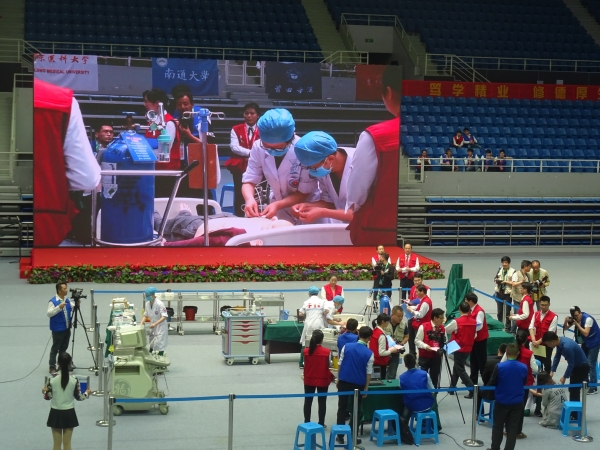 今年的第八届全国高等医学院校大学生临床技能竞赛(华东分区赛)以“尚医德、兴医术、奉医道、展风采”为宗旨,是一场高水平的比赛,本届比赛呈现以下特点:一是本次比赛内容多、知识点广,竞赛题目考察全面,涉及内、外、妇、儿、眼、皮肤等各个科目,几乎覆盖了教育部规定的90项考核范围。二是竞赛范围越来越广,今年的考核范围中首次将综合能力考察作为专项考核项目,包括沟通交流、团队合作、职业精神、法律常规等相关内容;因此对参赛选手的要求越来越高。三是竞赛题目综合性强,临床技能操作项目在往届考核项目的基础上进行了整合,较以往更应用于生活,更贴近临床,更灵活多变,并广泛使用SP病人和情境式模拟临床现场急救,全面考察学生的临床知识、临床思维和人文关怀等;四是赛程安排细致科学,采用站点式和赛道式相结合的方式,初赛共使用站点20个,主要检验参赛选手的基础理论、基本知识和基本技能;复活赛、半决赛、决赛采用赛道式,不仅考核选手临床技能,还注重考核参赛选手的判断能力、反应能力、医患沟通能力、人文关怀和团队协作能力。五是各高校更加重视实践教学,参赛和校外观摩人员达1300多人,创历史新高,我校组织一线临床教师共30余人赴比赛现场进行观摩、学习和交流。