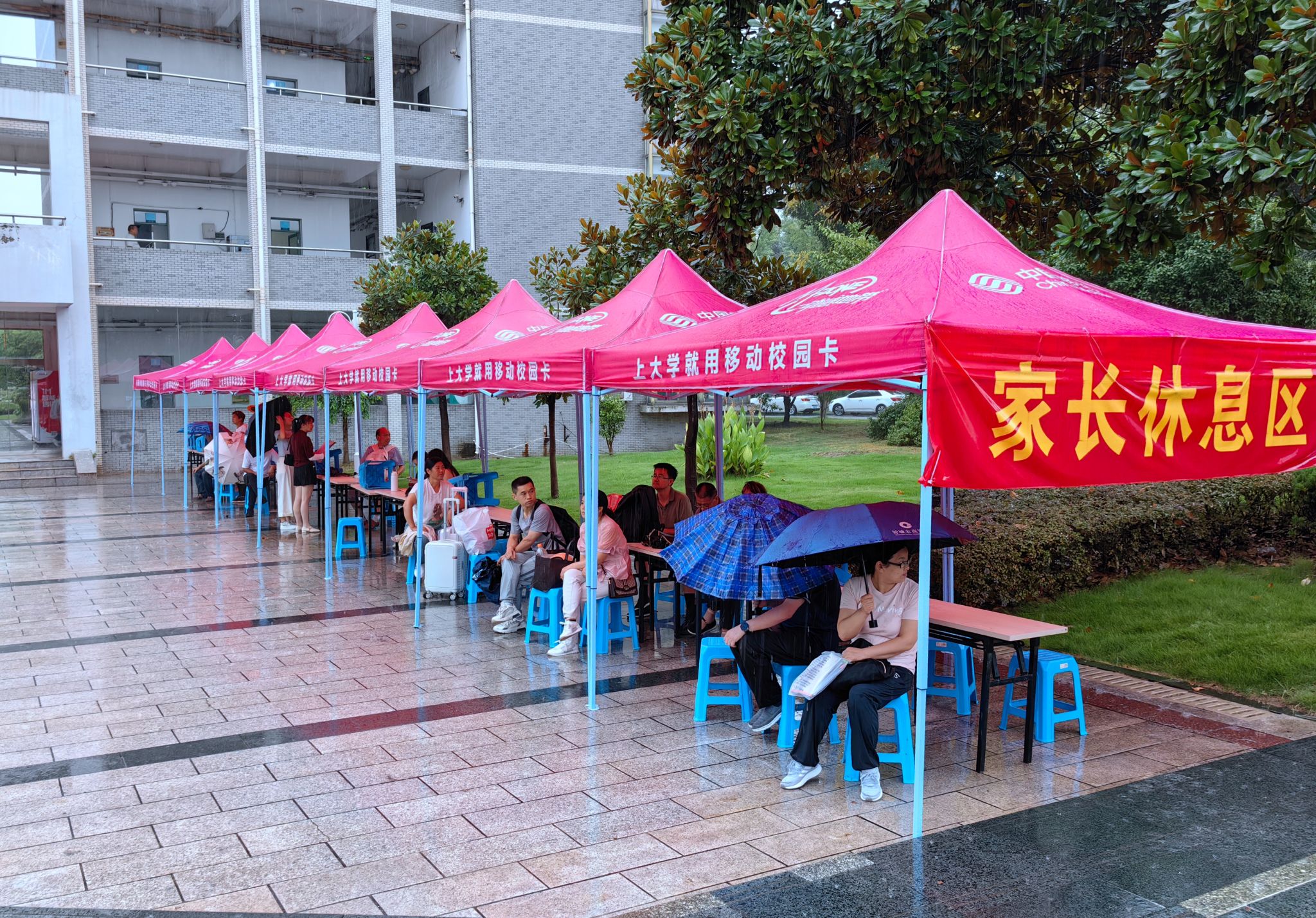 迎新首日,芜湖迎来入秋后的首场大雨。虽然大雨滂沱,但却淋不湿新同学与学校“双向奔赴”的温暖。学校及时优化报道地点、简化报道流程、开通绿色通道,并设置家长休息区,最大限度为学生报到提供方便。
