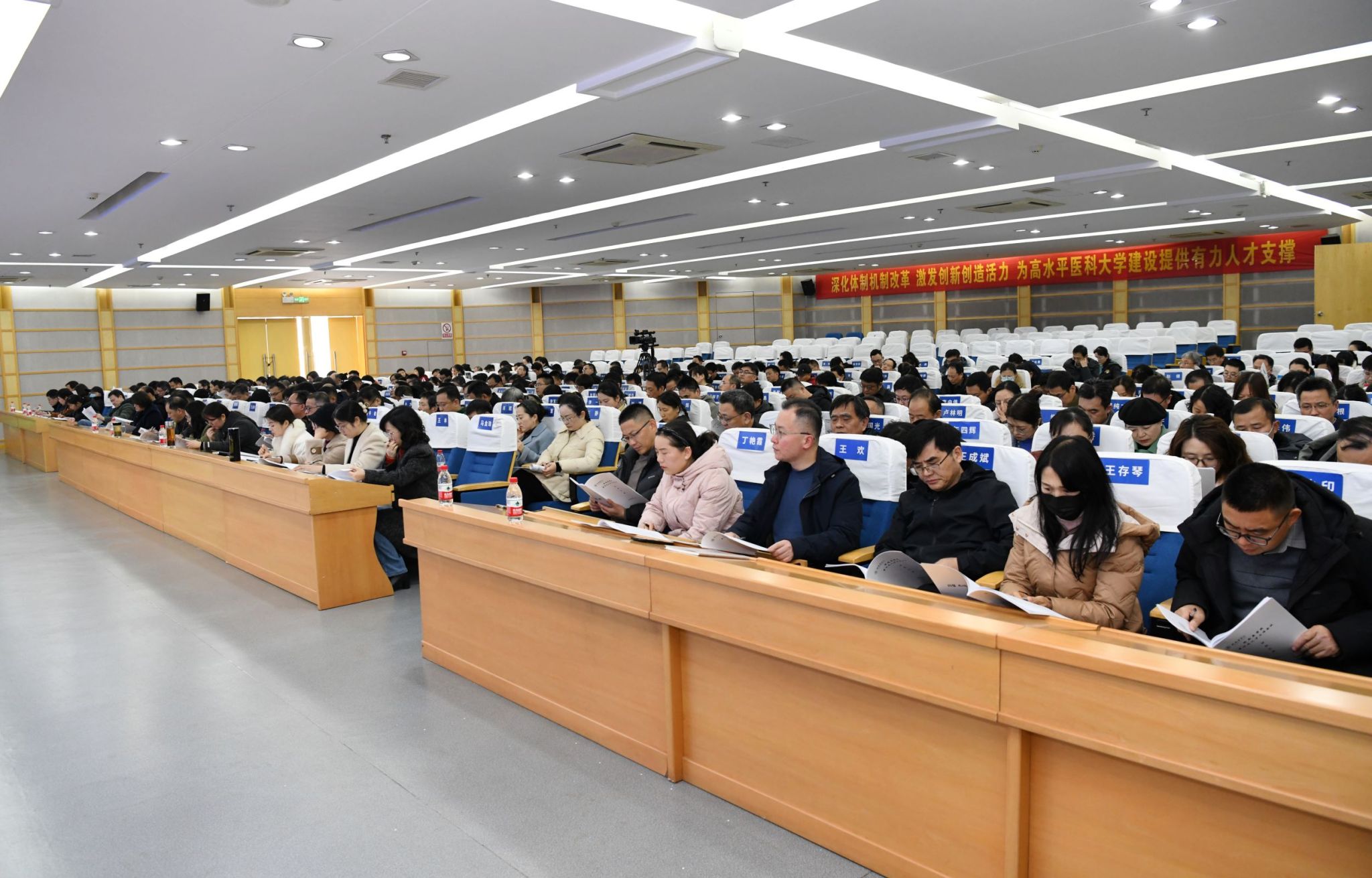党委书记夏劲松作题为“深化体制机制改革,激发创新创造活力,为高水平医科大学建设提供有力人才支撑”的工作报告。报告从党管人才、工作视野、人才引进、人才培育、师德师风、人才服务和人才支撑等层面全面总结近年来学校人才工作成效,分析了当前面临的重要机遇与严峻挑战,明确了未来几年学校人才工作的指导思想和主要目标,确定了“坚持党管人才,把好方向;坚持师德为本,铸牢师魂;坚持引育并举,引领发展;坚持平台支撑,优化环境”的基本原则。