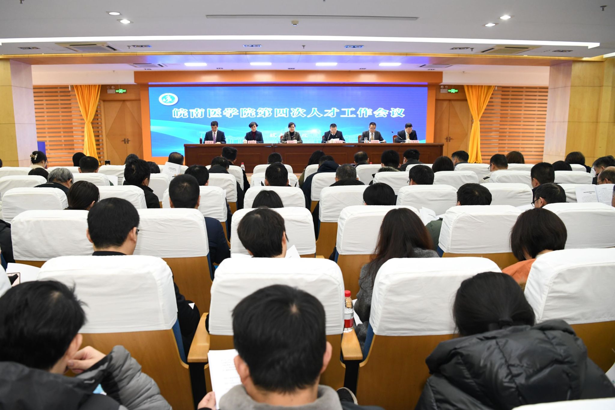 汇才聚智促发展,蓄势赋能谱新篇。2月16日下午,学校第四次人才工作会议在学校图书信息楼三楼学术报告厅隆重举行。会议深入学习贯彻习近平总书记关于人才工作的重要论述,全面落实中央人才工作会议精神,回顾总结学校人才工作成效,加快推进新时代人才强校战略和人才发展机制改革,最大限度激发人才活力,为高水平医科大学建设提供有力人才支撑。校领导夏劲松、姚应水、贾贤燕、文育锋、王保中、韩永升出席会议。全体处级干部,校本部正高级职称人员、教研室(实验实训中心)主任,附属医院教研室主任和博士代表参加会议。会议开幕式由党委副书记、院长姚应水主持。