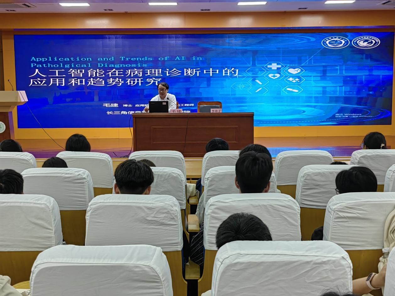 为充分发挥产业教授在医工交叉人才培养方面的作用,帮助学生更好地了解医学信息学的行业发展态势,促进产教融合,10月16日晚,医学信息学院邀请产业教授毛建在图书信息楼三楼报告厅作题为“人工智能在病理诊断中的应用和趋势研究”的学术讲座。讲座由医学信息学院院长李祥子主持,2021级智能医学工程和医学信息工程300余名师生聆听讲座。